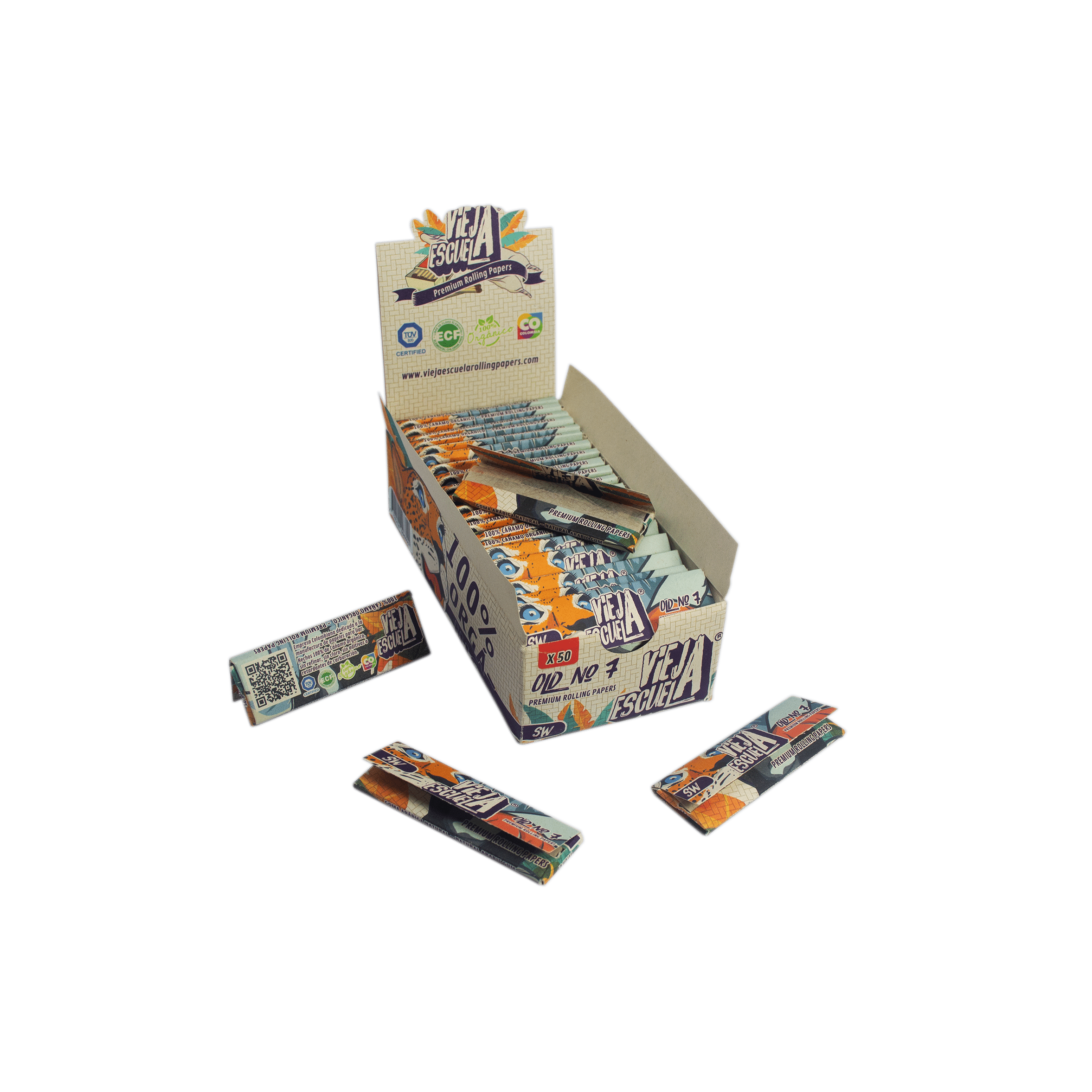 El Display Old Nr. 7 Single Wide Sin Filtros está pensado para puntos de venta que buscan rotación constante y una presentación ordenada del producto. Cada display contiene 50 librillos, y cada librillo incluye 50 hojas elaboradas con cáñamo 100% orgánico.
